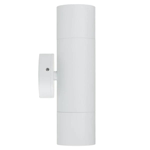 Matt White Up Down Wall Light Tivah in Aluminium, Poly Powder Coated White. High Output Reflector & 60/120deg beam angles. IP65, 240v AC/12v DC. Includes Matching Backing Plate. 3 Yr Replacement Warranty. 2x GU10 & MR16 models - 200-630lm & 2-7w/5w 240v/12v LED.