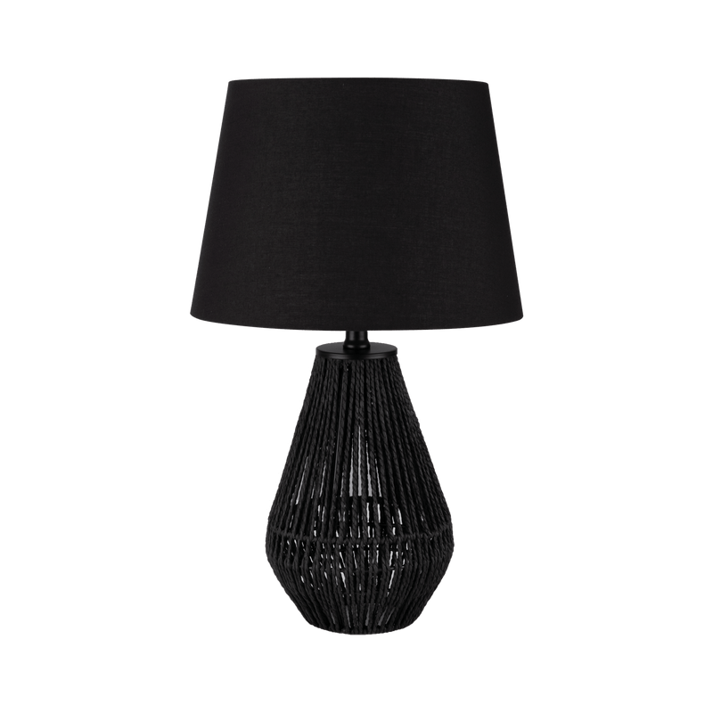CARTER-TL Ideal as a feature lamp in living rooms and bedrooms, as well as attractive pendants for breakfast bars, or cluster pendants. CARTER-TL - Paper Rope Table Lamp Featuring Matt Black metalware, black cable with a choice of Black or Natural colour shade options.