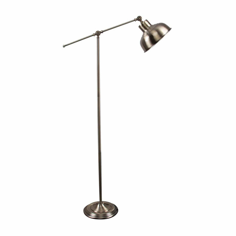 The TINLEY-FL floor lamp has enough charm to place it in any room, with colour options available to suit any existing colour scheme. This lamp has a modern, adjustable design that is complimented by the classic round shade. Available in Antique Chrome, Antique Brass and Antique Copper. Part of a family of matching desk lamp and floor lamp.