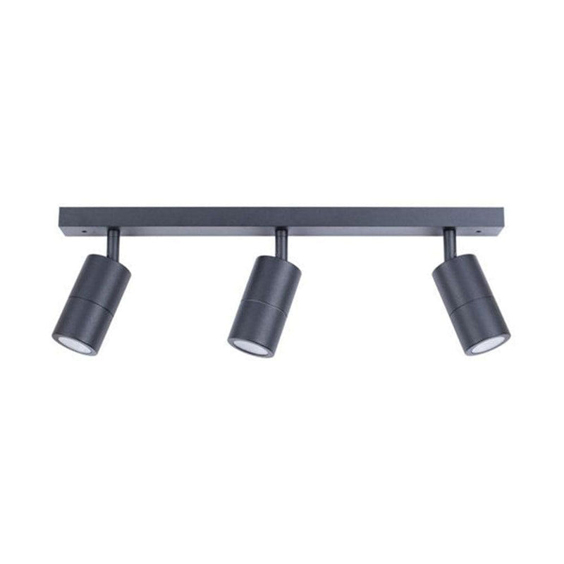 Outdoor Ceiling 3 Spotlights Adjustable L550mm White, Black and Titanium colour Aluminium Focus on the versatility of the product with the next sentence: The fully adjustable spotlights allow for customizable lighting options to fit your space and needs. It's a versatile outdoor lighting solution. With fully adjustable spotlights, you can customize your lighting to fit any space, for any situation.