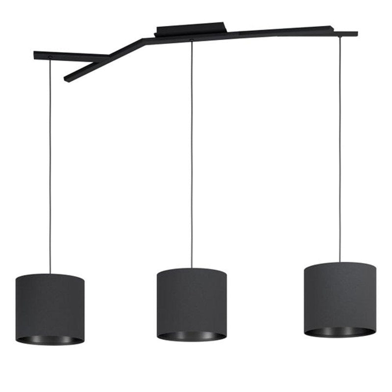 Balnario Pendant Light 3Lt in Black combines steel base and black fabric shade, creating a bold and textured piece for modern homes. Specifications: Black, Steel, Fabric, 3x E27, 3x 40w, 220-240v,50/60Hz, IP20, 2000mm H, 250mm W, 1305mm L, 3.01kg W.