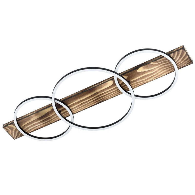 Boyal LED Ceiling Light 36w Enclosure: steel/wood, black/brown rustic. Glass/Shade: plastic, white. Protection Degree: IP20. Illuminant: incl. Socket: LED. Voltage: 220-240V,50/60Hz. Dimmable: No. Max. Wattage: 3X12w. Lumen: 3400, 1700. Kelvin: 3000k. Warranty: 5 yrs. EEI: E. Dimensions: L 1,010mm W 400mm H 95mm.