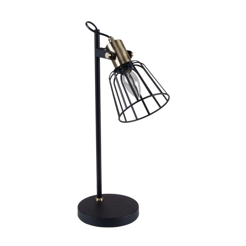 DOMUS ASHLEY-DL CAGE DESK LAMP's unique form and easy dimming capabilities will illuminate any living space. This lamp will bring a modern touch to any room, featuring a matte black finish and a sleek silhouette.