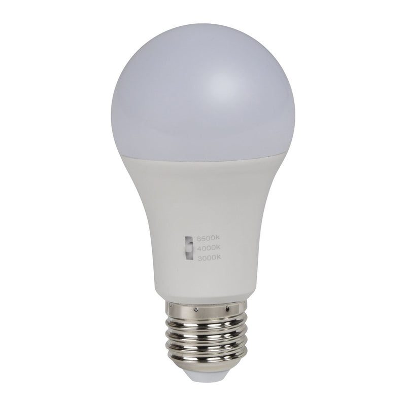Domus KEY-GLS-TRIO LED A60 Frosted PC Globe, A60 standard household globe, GLS shape, with a 190° wide beam for better light projection. Tricolour switchable: choose between Warm White 3000K, Neutral White 4000K, or White 6500K colour temperatures with the flick of a dip switch.
