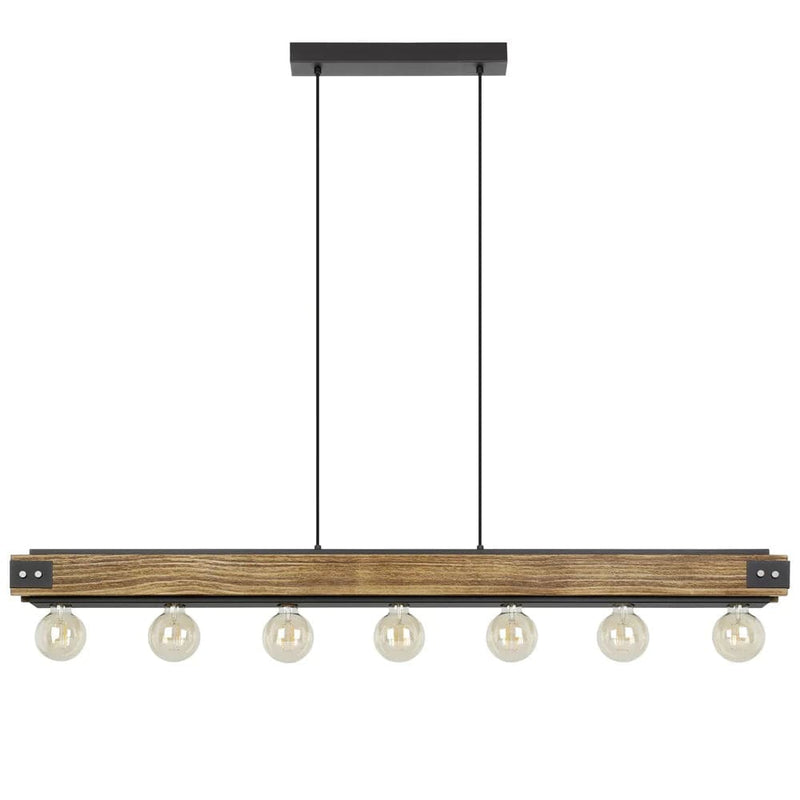 Layham 7Lt Pendant Light in Black & Rustic Wood features a black steel & brown rustic wood outer and pairs nicely with LED filament globes. The LAYHAM features meticulous attention to detail, providing an eye-catching, stylish lighting solution for any room. This versatile pendant light is designed for maximum visual impact. Its robust construction and durable finish make it a timeless piece that will last for years.