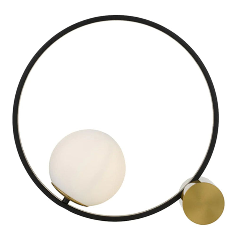 Matias Table Lamp 1 LTtable lamp will perfectly blend with a variety of room styles. The metal outer ring cradles a mouthblown glass sphere and the balance is completed by a machined metal cylinder. A modern design with classic organic charm. Specification: Colour: Black/Antique Gold/Opal Matt Voltage Input: 240v Wattage (max): 25w Globe Base: E27 Globe Quantity: 1 Globe.