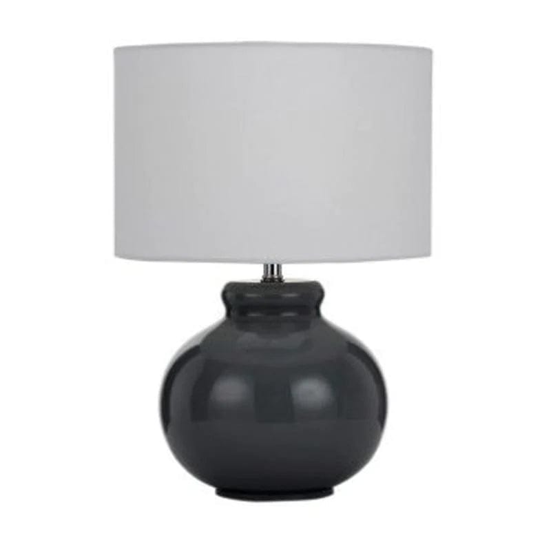 Olga Table Lamp in Grey Base w/White Shade is a sleek, polished light perfect for adding some brightness to any room. With a simple design and an understated grey base, this lamp is ideal for anyone looking for a fuss-free way to brighten up their space.