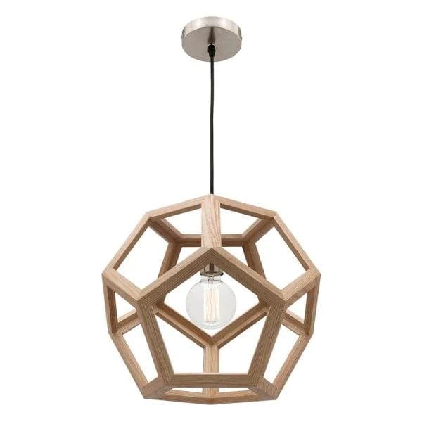 Peeta Pendant Light Natural Timber in Small Features 1 Light Natural Timber pendant with Brushed Chrome metalware. 1200mm Black fabric cord suspension. Suits E27 Max 60w globe (not included) Specifications.