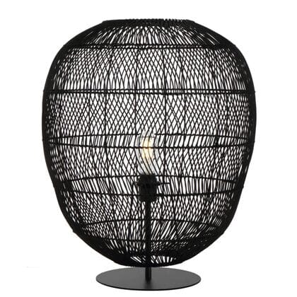 The Rana 50 Rattan Table Lamp Black is a high-quality construction of hand-woven rattan material forming a teardrop shaped shade.