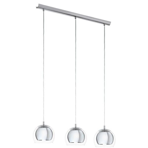 Rocamar Pendant Light 3Lt in Chrome/Clear Glass Product Specifications Brand Eglo Lighting Sku(s) 94593 Product Type Pendant Light Colour Chrome Shade Colour Clear Width 190mm Height 1100mm Depth 780mm Weight 3.819 kg Material Steel Shade Material Glass Wattage (Max) 3x 40w Bulbs Required 3 Globe Type E27 Voltage 220-240v IP Rating IP20 This modern, sophisticated lighting pendant is designed with energy efficiency in mind, making it an eco-friendly choice that helps you reduce energy costs.
