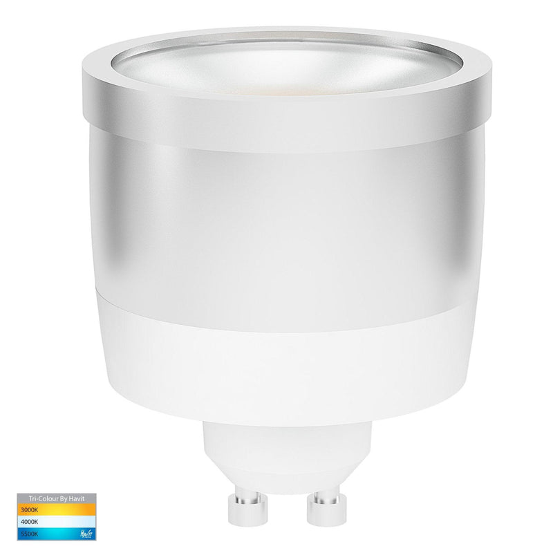 Colour 9in1 240v GU10 LED Globe by Havit Lighting option all in one globe Tri-Colour + 3 Power settings 9in1 Dimmable Ability to select 3000k,4000k and 5500k Input Voltage: 240v Lamp Base: GU10 60° Beam angle 3 Years