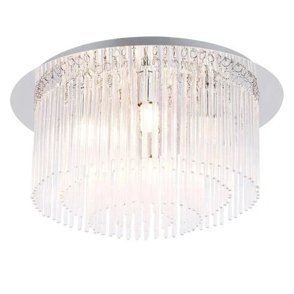 6Lt crystal glass decorative ceiling fixture. Glass shade and metal chrome canopy.
