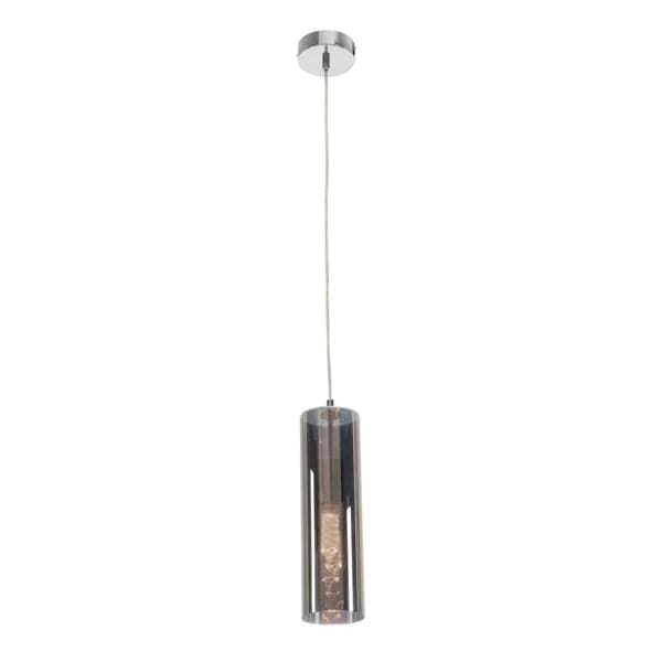 EDEN LED pendant Light in Amber or Smoke Glass Features Glass pendant E27 Cylindral glass shade Chrome metalware and lampholder cover 2000mm.