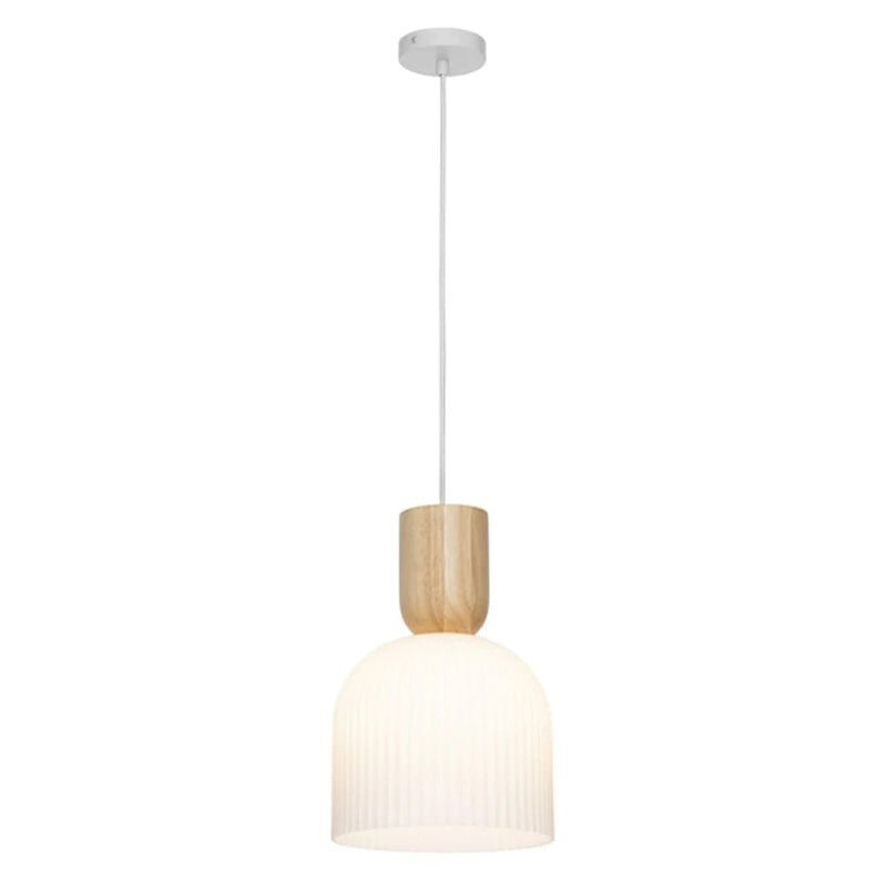 Ribbed Glass Pendant with Matt white ribbed glass shade and FSC wood shade top.