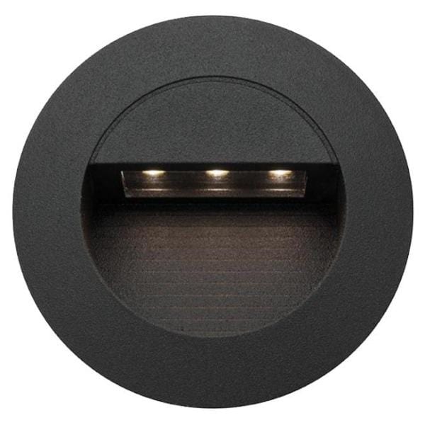 Rye LED Step Light Round Description:Rye 1.2W LED Round SteplightFeatures: Round LED Recessed Steplight Black or White aluminium body Suitable for Indoor or Outdoor application IP54 Rating 1.2W LED – 3000K Colour Temperature 80 lumens.