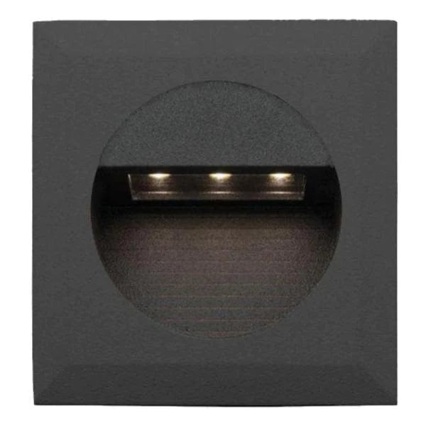 Rye LED Step Light Square in Black Description: Rye 1.2W LED Square SteplightFeatures: Square LED Recessed Steplight Black or White aluminum body Suitable for Indoor or Outdoor application IP54 Rating 1.2W LED – 3000K Colour Temperature 80 lumens.