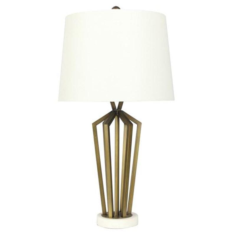 Enjoy the perfect lighting from this ROMSEY Geometric Metal Table Lamp in Bronze with its geometric metal base, warm bronze finish, and ivory linen fabric shade. This table lamp is a centerpiece of elegant design with sturdy construction. Its warm bronze finish, ivory linen fabric shade, and geometric metal base provide an eye-catching look that radiates class and character in any room.