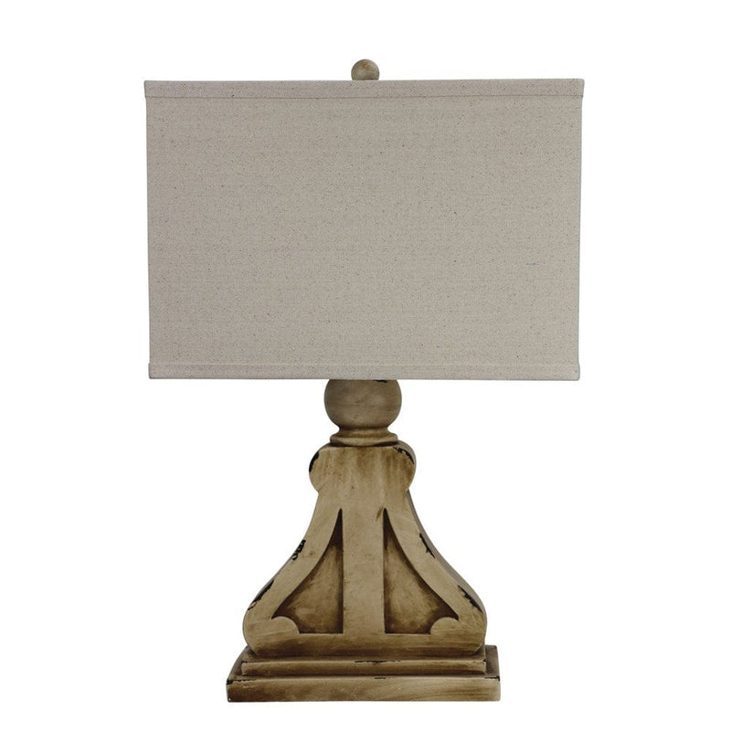 The Provence Table Lamp in Wood-tone Resin comes complete with an off-white shade. At 61cm tall, the Provence is a statement piece that can adapt to most rooms in your home. The on/off switch is located on the cord. Its wood-tone resin and elegant off-white shade make the Provence Table Lamp a stylish addition to any space; and with an on/off switch located on the cord, you can easily control the ambiance.