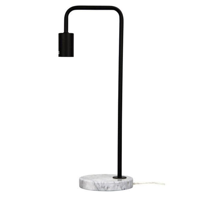 Black Scandi Lamp with Marble Base Ville Table Lamp in Black features a marble base and matt black metalware. VILLE is available in both a floor and table lamp, suitable for bedside or living areas. Switch is conveniently located on the clear cord (1.2m long).