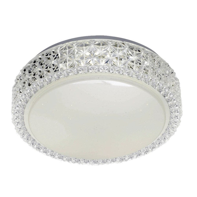 This Amelia Large LED Oyster Light 32W is crafted from metal and polycarbonate, and offers surge protection of 1.5 Kva, a power factor of 0.90, plus electrical protection of Class I-High Voltage and Earth Required. The diffuser is available in Clear and Opal Polycarbonate, while the Canopy is White.