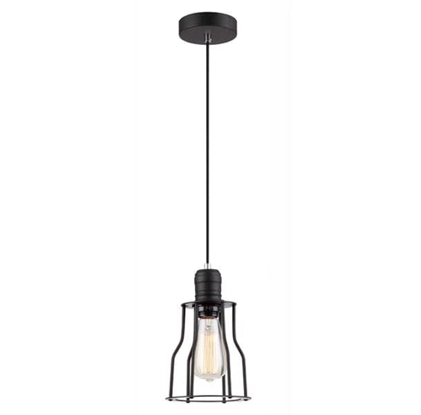 BlackBand Iron Cage Pendant Light in Black in Black from BlackBand features a 240v AC input voltage, iron material, and an angled cage base. It has a 72w maximum wattage and an E27 lamp base with a 25w carbon filament globe (not included). Indoor use only, it brings modern style to homes or cafes. Dimensions: ø156mm diameter, 234mm.
