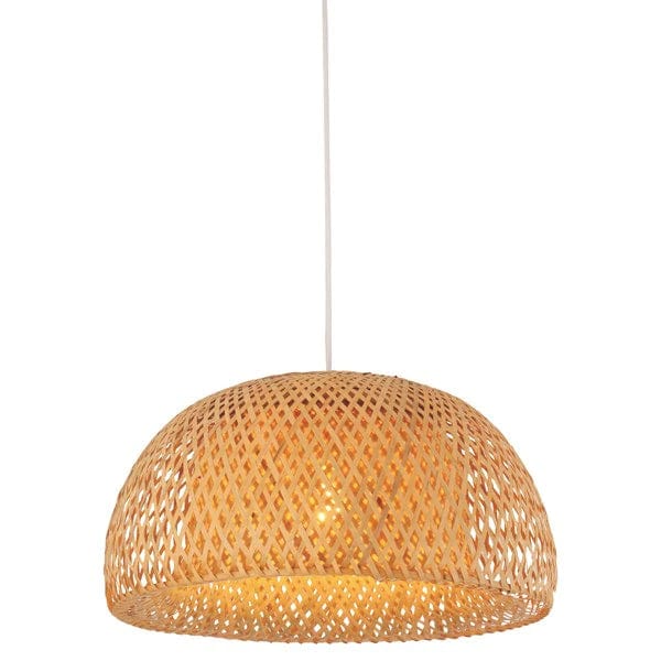 Canasta Dome Pendant Light Large in Natural Bamboo Finish This pendant light features a classic European design crafted from sustainably sourced bamboo, making it a stylish and eco-conscious choice for your home.