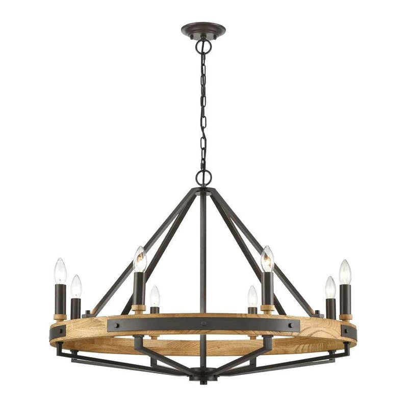 FUNALE: Interior Candelabra Natural Wood / Oak Wood 8-Light Pendant Lights