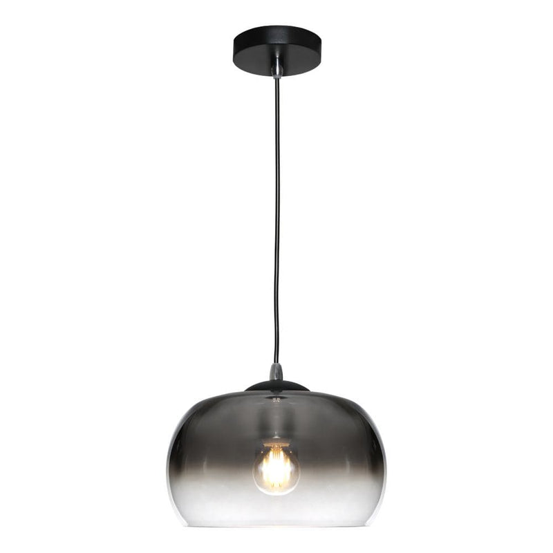 JORDET 1 LIGHT PENDANT BLACK series by Cougar Lighting features smoke-coloured tinted glass combined with black metalware, designed to create a unique lighting atmosphere when using filament LED globes through it's semi-transparent shade.