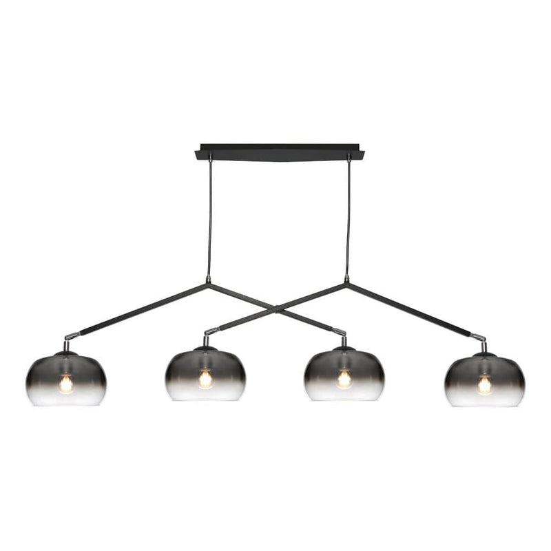 JORDET 4 LIGHT PENDANT by Cougar Lighting combines steel and glass to create a dramatic yet harmonious design. The Jordet boasts a unique black frame that elegantly supports it's smoked glass shades, resulting in an exquisite blend of luxury and refined aesthetics.