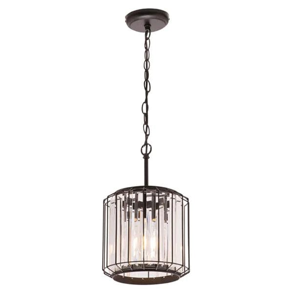 Olympia Pendant Light 1 Lt Matt Black w/Clear Crystal. Features: Matt Black metalware, Black cord & chain, suits 1xE27 Max 40W globe (not incl.). Also avail. in 3Lt & 4Lt. Dimensions: 235mmWx220mmH, ø120mmx25mm Canopy, 1200mm cord susp.