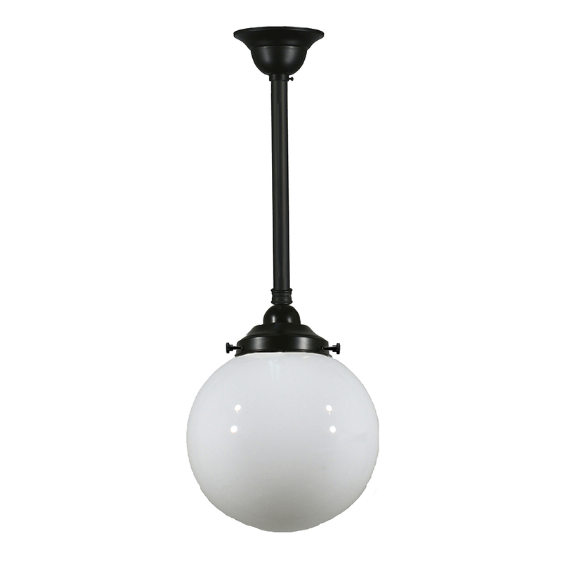 A classical traditional Single Rod Pendant Patina With 8" Sphere Opal Gloss Glass with its elegant design can enhance your living spaces and create an inviting atmosphere with its own story and interpretation.