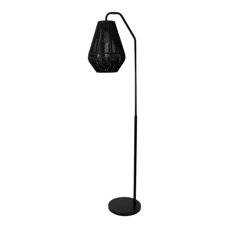 CARTER-FL - Paper Rope Floor Lamp Featuring Matte Black metalware, black cable with a choice of Black or Natural colour shade options. Part of a family of matching floor lamp, table lamp, desk lamp, as well as small, medium and large hanging pendants.