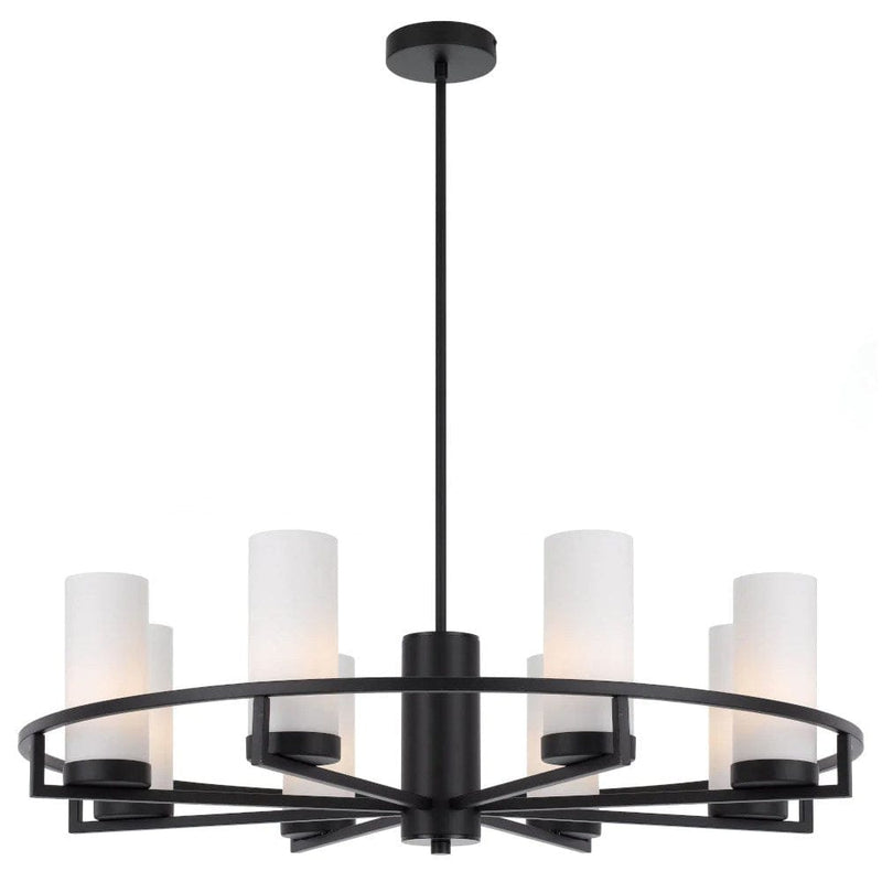 The Eamon Pendant Light 8Lt lighting family is round and radiant and will give any room an upscale update. The hand crafted circular frame host the mouth blown opal matt cylindrical shades that will provide perfect lighting for dining and living areas.