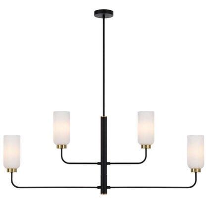 The Sebring 4 Light Pendant Light blends traditional with minimal. Gently curved rods extend from the center, and support the elegant opal matt glass shades, creating a warm, even ambiance. Available as a narrow and long arm 4 light, a two tier 8 light and a twin wall lamp. The on trend black finish is contrasted with accents of antique gold.