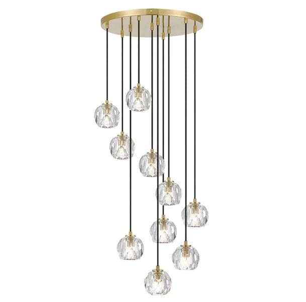 Description:Zaha LED Pendant Light 10Lt Spheres of prismatic cut crystal bring contemporary glamour to the Zaha collection. Each sphere is illuminated with a LED twinkle globe accentuating the cut surface.