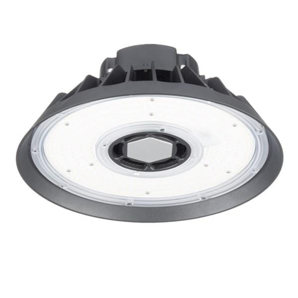 Tarzen High Efficiency LED UFO Highbay 150w 5000k in Black comes ready to use with a 1.5m flex and plug. Delivering an impressive 150lm/W, this lighting system is compatible with 0-10V dimmable drivers and is IP65 rated.