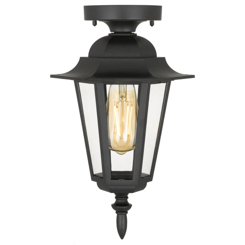 The Upton exterior light, available as a wall light or close-to-ceiling fitting, features a lightweight design and a sleek black finish. With an IP44 rating, it ensures durability and protection in outdoor settings.