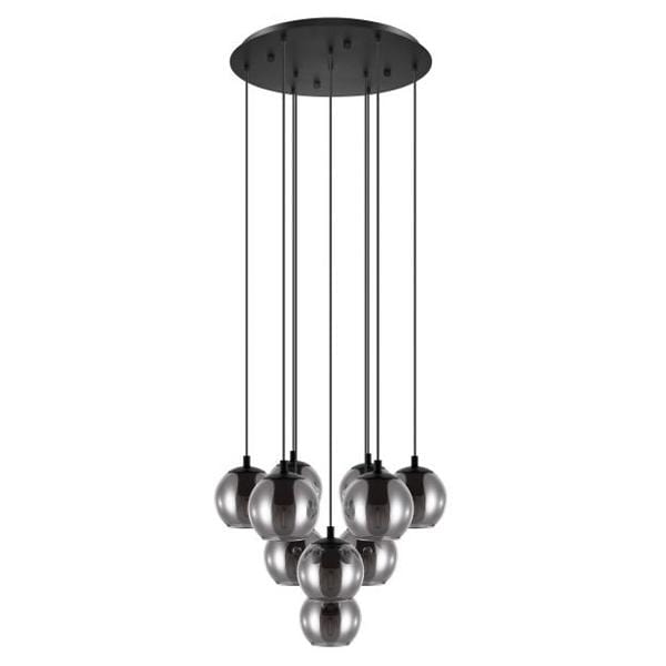 Ariscani Pendant Light 10Lt This striking black vaporised glass of the Ariscani will add a contemporary feel to your home. The 10-light design radiates bright illumination across your space, making it ideal for modern and contemporary living areas. Crafted with quality materials, it's built to last and is easy to maintain.