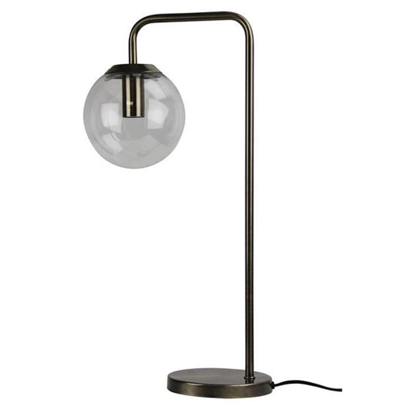 Newton Table Lamp Clear Glass in Antique Brass or Black is the ultimate in contemporary style. A simple yet effective source of light, NEWTON is finished in matt black or antique brass, with a clear spherical glass. Switch is conveniently located on the cord. NEWTON is both modern and practical.