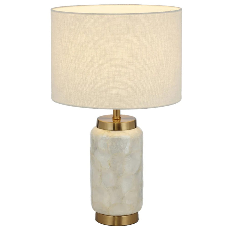 The Seneca table lamp combines elegance and durability with its sturdy iron base and captivating capiz shell detailing. The lamp is topped with a tasteful fabric shade, creating a harmonious blend of materials and textures. This sophisticated piece not only provides ambient lighting but also serves as a stylish addition to any space, adding a touch of refinement to your home decor.